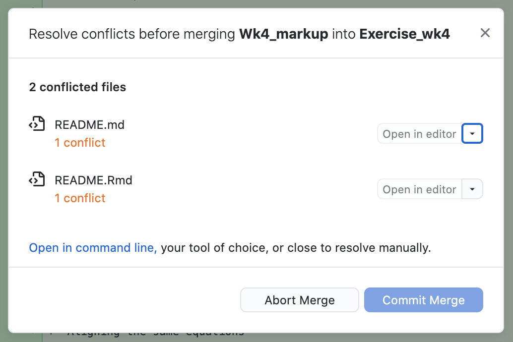 Your branch is up to date with 'origin/Exercise_wk4'.Then we can attempt to merge: